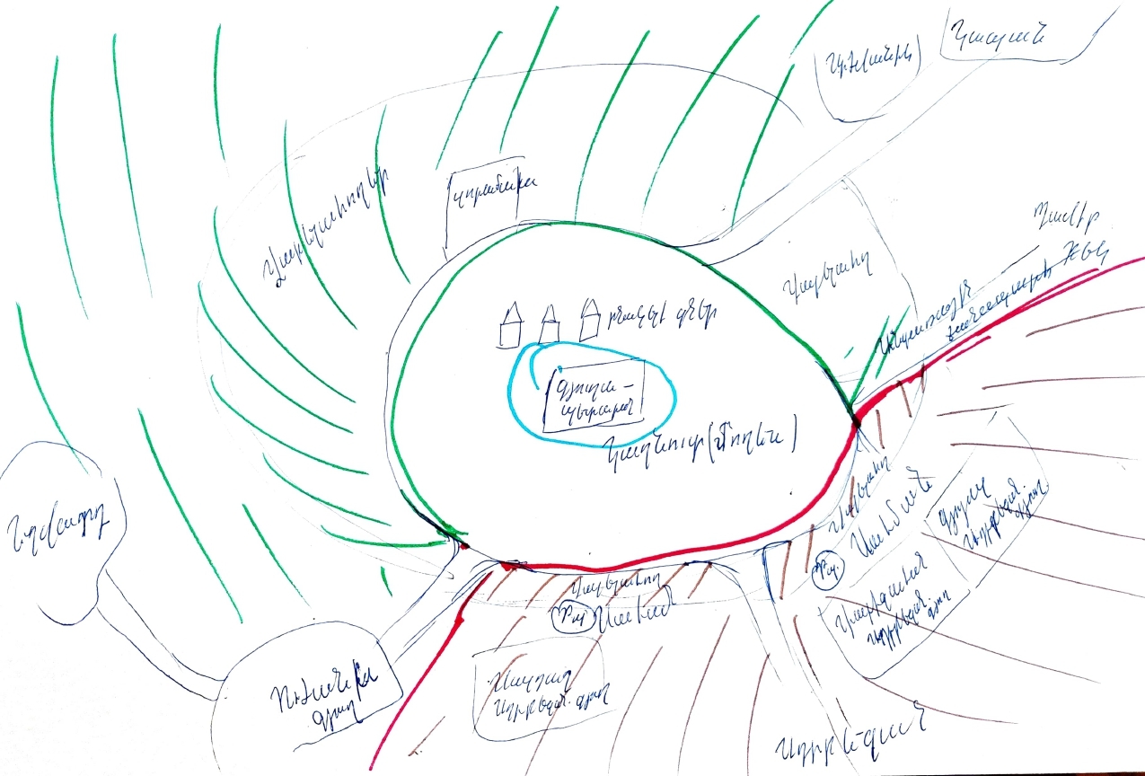 Ոսկեպարի բնակչի գծած մտային քարտեզը, որտեղ եկեղեցին էլ է վտանգավոր գոտում