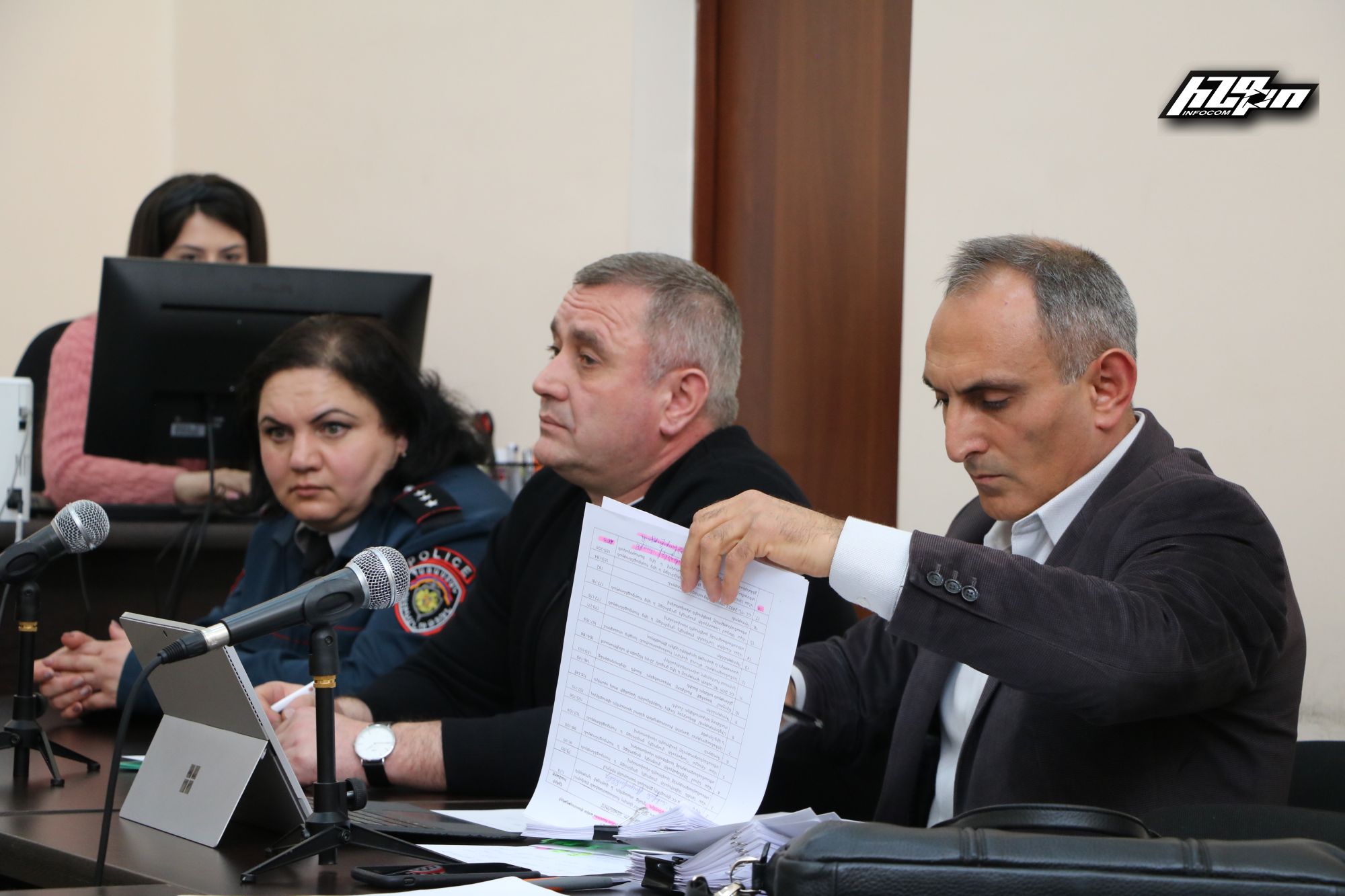 Հրապարակված արտավարութային փաստաթղթերը դարձյալ մարտական հրամաններ էին, դրանցից բխող կարգադրություններ եւ գրություններ, իսկ լազերային սկավառակում մարտական գործողություններից մի տեսանյութ էր։ Այն իր բջջային հեռախոսով նկարահանել եւ հետագայում Քննչական կոմիտեին էր տրամադրել հիշյալ փոխգնդապետ, գործով վկա Համլետ Լեւոնյանը, որի անձնակազմը ենթադրյալ հանցանքի հետեւանքով մնացել էր շրջապատման մեջ։ Տեխնիկական միջոցների բացակայության պատճառով տեսանյութը կհետազոտվի հաջորդ նիստում։