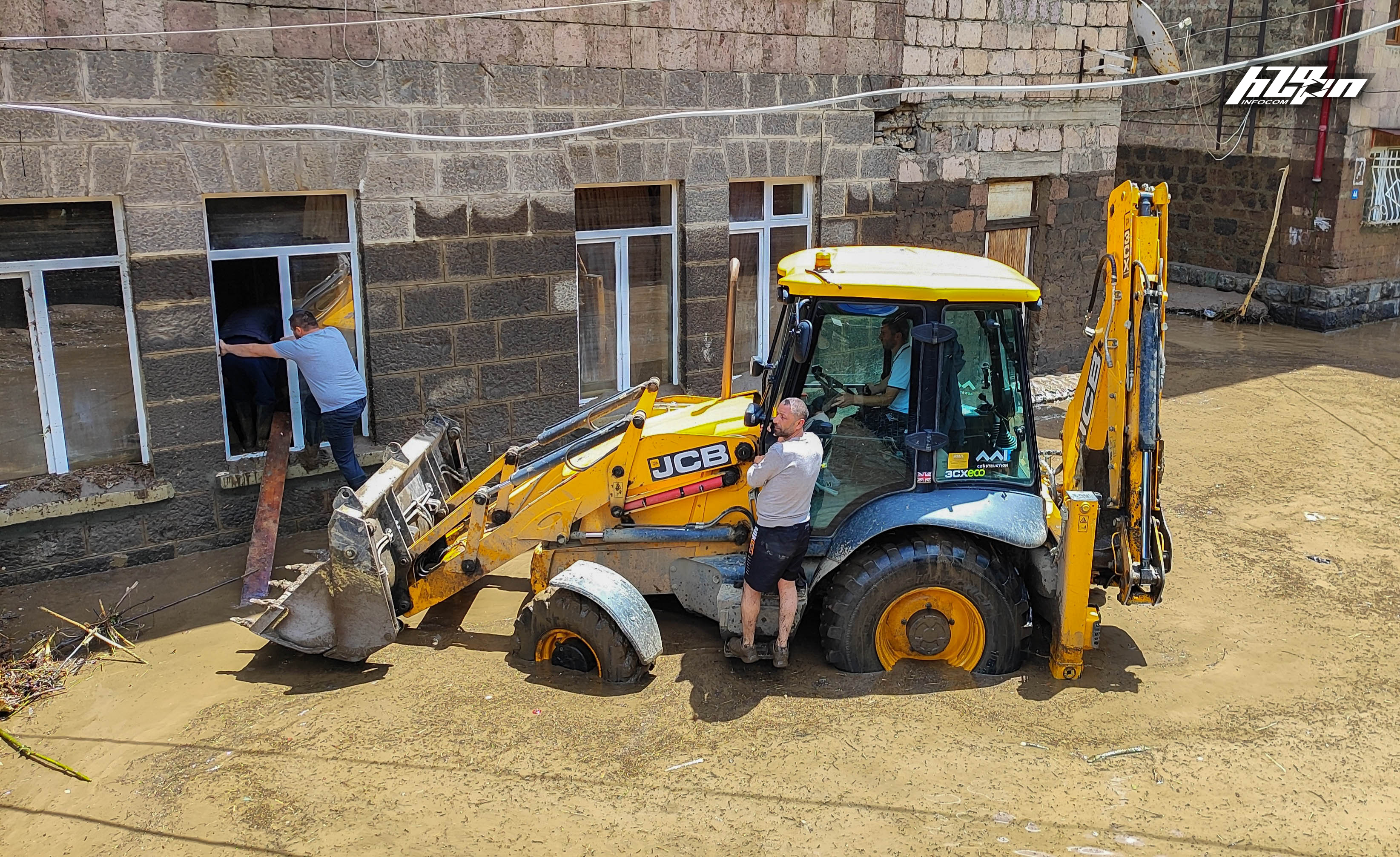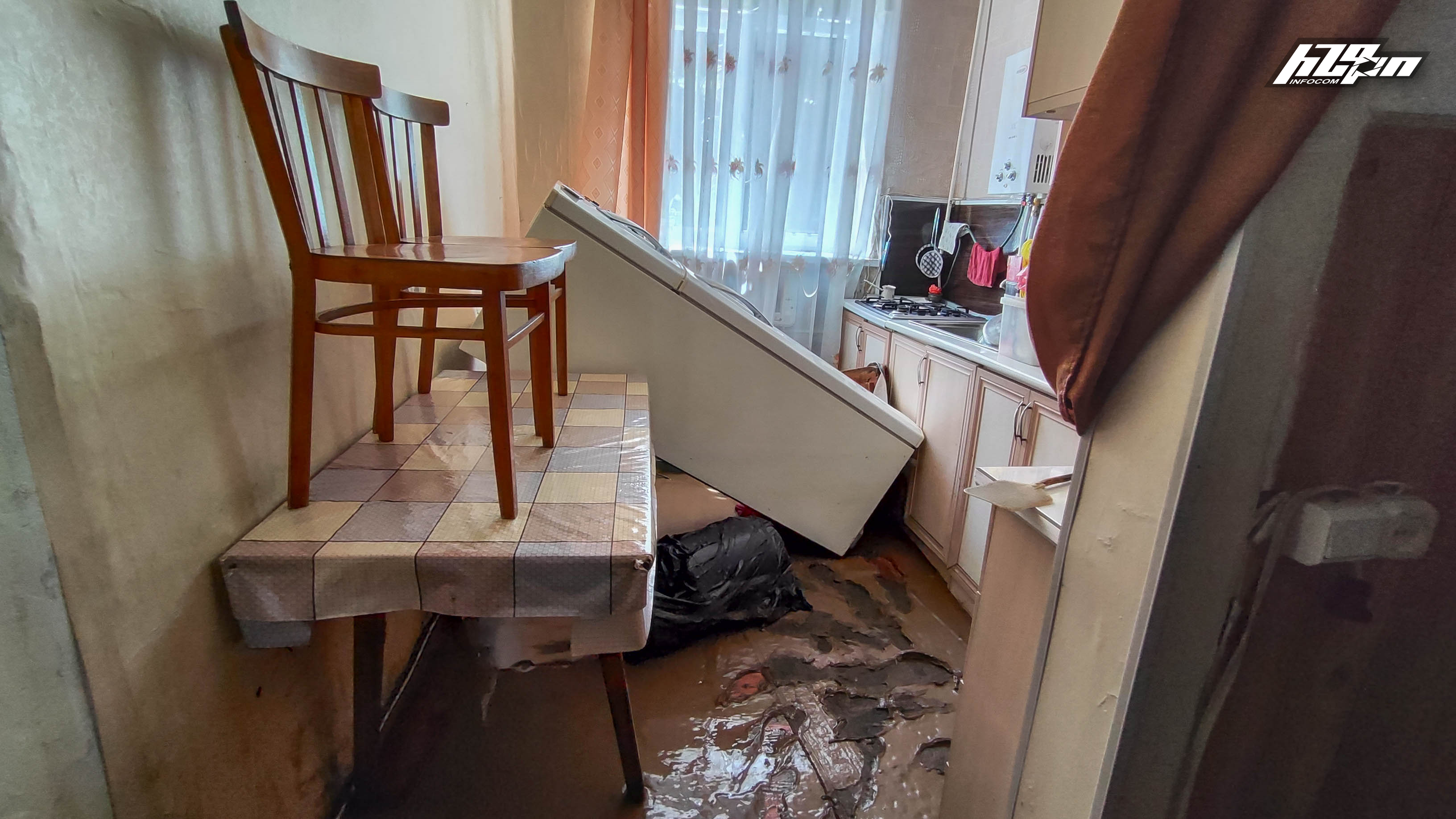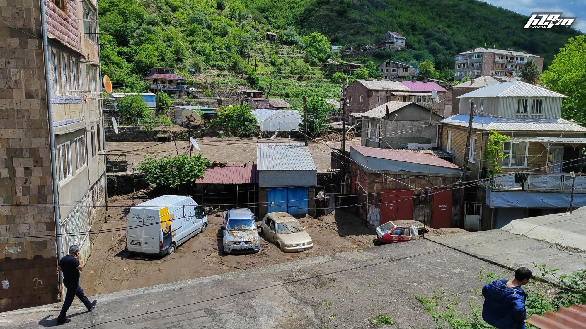 Քիչ այն կողմ՝ թաղամասի շենքերից մեկի բակի ցեխաշերտի մեջ բնակիչները մի ոտաչափ արահետ են բացել, որ ջուրը հոսի՝ դուրս գա։ Շենքերի հիմքը ցածր է, ջուրը միանգամից ներս է լցվել։ «Սոթ չտաք մենակ»,- տուն մտնելիս ասում է Սիրուշ Խաչատրյանը։ Ջուրը, որ լցվել է մուտք, նա ու որդին պատուհանով են կարողացել դուրս գալ, բարձրանալ վերեւի հարկ։ Նրա հարեւանը՝ Էլմիրա Գեւորգյանը, հազիվ է փրկվել վնասվածք ստանալուց․ ջուրը լցվել է տուն ու պոկել նկուղի վրայի տախտակը։ Ջրի բարձրության պատճառով նա չի նկատել անցնքն ու ոտքն ընկել է մեջը։ Բազմոցից բռնվելով է կարողացել սենյակից դուրս գալ․ «Գիշերը 2-րդ-3-րդ հարկերում լուսացրինք, հետո փրկարարներն ասացին, որ գիշերը նորից վարարում կարող ա լինի, խորհուրդ չտվեցին մնալ էստեղ»,- պատմում է նա։