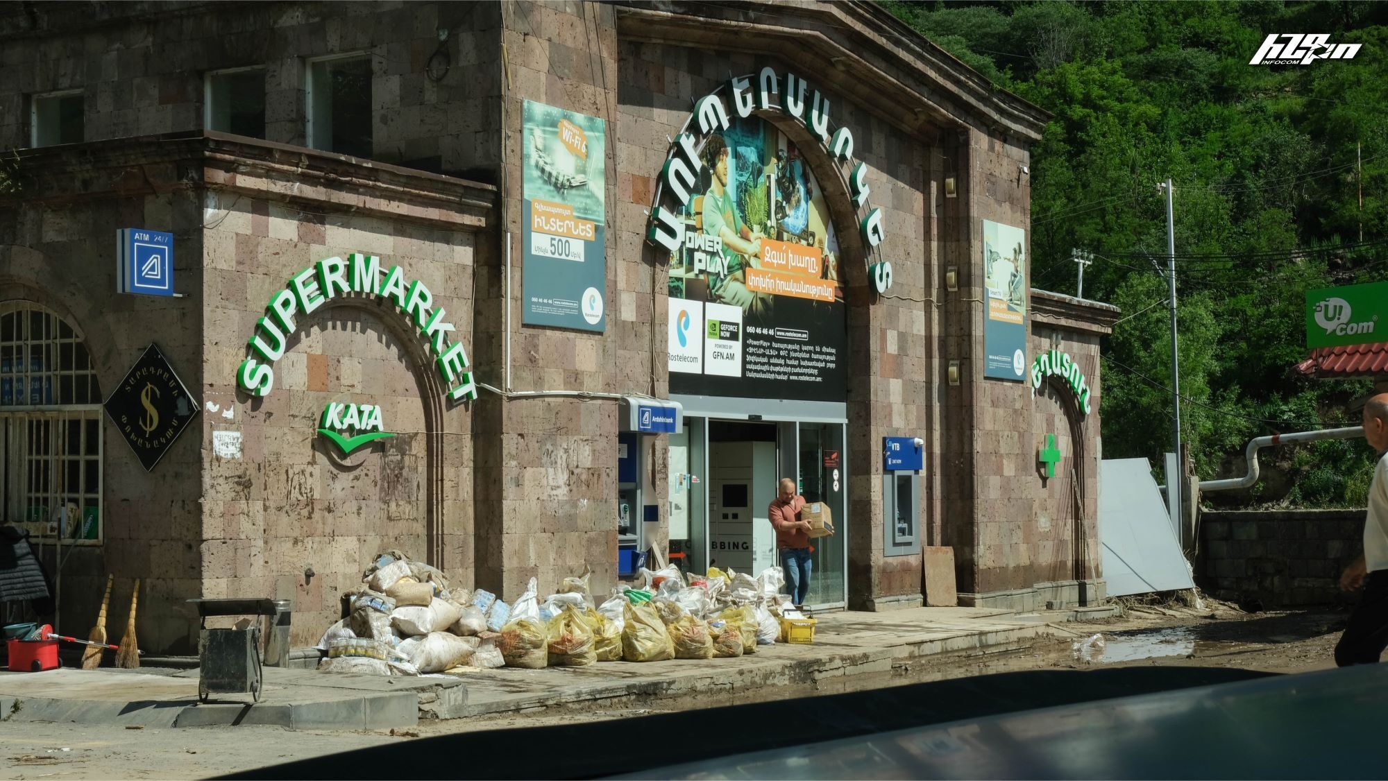 Ինչպես այստեղ, այնպես էլ Ալավերդու մեկ այլ թաղամասում՝ նախկին շուկայի տարածքում, մարդիկ լուռ մաքրում են փողոցներն ու խանութները։ Գետը այս հատվածում փլուզել է ճանապարհը, քշել տարել մի տնակ, լցվել ափամերձ խանութներ ու սուպերմարկետ։ Աշխատակիցները սուպերմարկետից պարկերով հանում են փչացած մթերքները, ջրի շիթով փորձում մաքրել դարակներ լցված ցեխը։