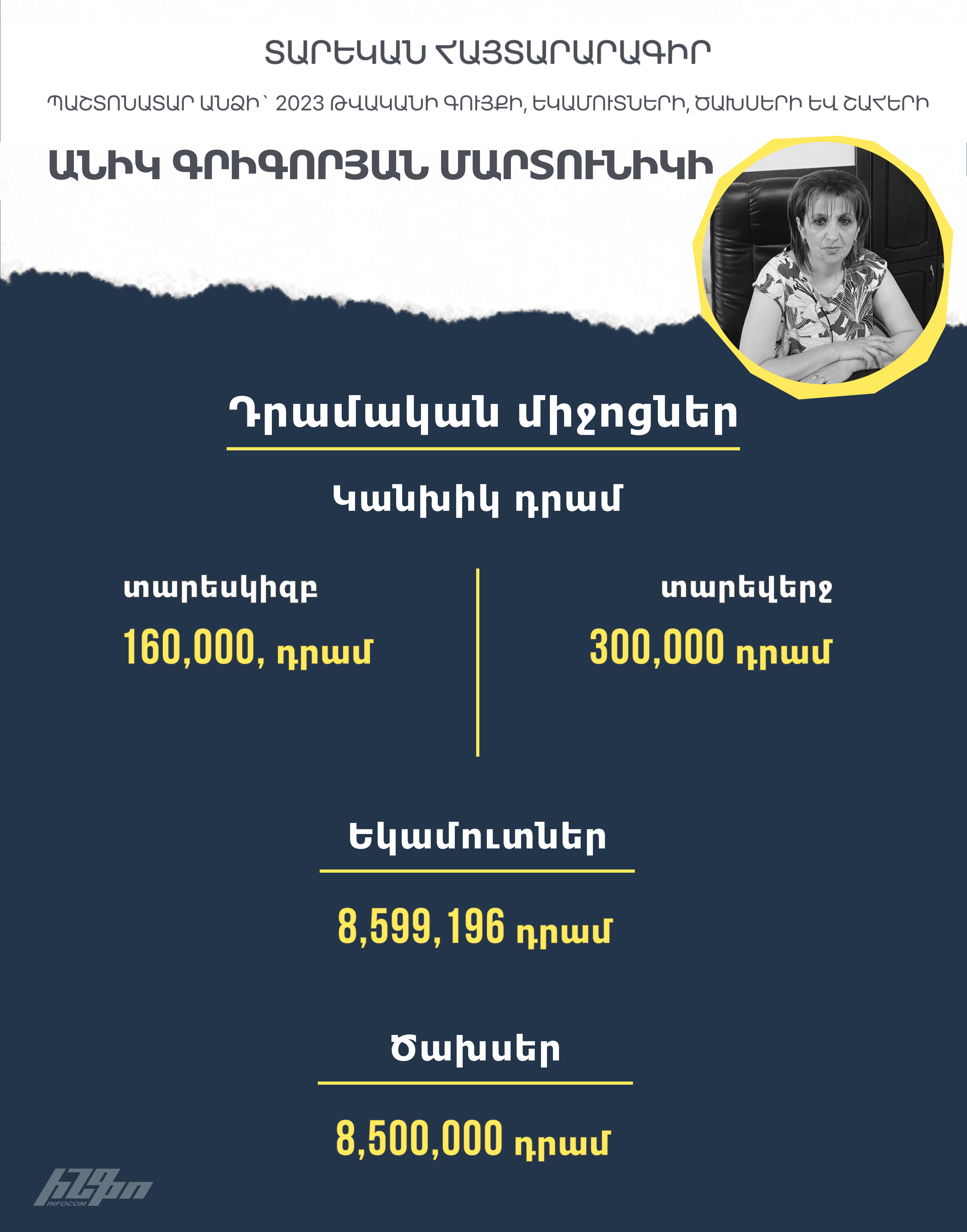 Տարեվերջին Միրզոյանի հայտարարագրած դրամական միջոցները դարձել են 36 մլն 352 հազար դրամ։