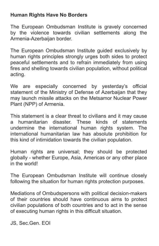 «Եվրոպական օմբուդսմանի ինստիտուտի գլխավոր քարտուղար Ժոզեֆ Սիգելեի պաշտոնական հայտարարությունը