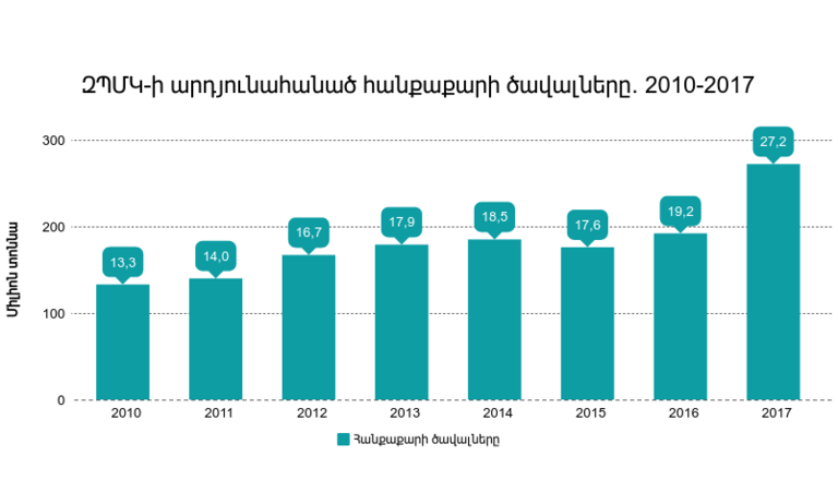 Ստացվում է, որ 2010-2017թթ․ ընթացքում ԶՊՄԿ-ն Քաջարանի հանքավայրից ապօրինի արդյունահանել է 34,9 միլիոն տոննա հանքաքար։ Այդ հանքաքարը պարունակել է մոտ 113 000 տոննա պղինձ, 10 500 տոննա մոլիբդեն, 950 կգ ոսկի, 47 տոննա արծաթ, 6,3 տոննա ռենիում և այլն։ Կարող եք ինքներդ հաշվել, թե շուկայական գներով դա որքան է կազմում։ Օրինակ պղնձի դեպքում դա կկազմի մոտավորապես 678 միլիոն ԱՄՆ դոլար (1 տոննայի գինը 6000 դոլար հաշվարկով)։ Այս տեղեկությունները փոխանցվել են նոր կառավարությանն ու իրավապահ մարմիններին՝ հանրային բնապահպանական դատարանի վճռի հետ միասին, նրանք շատ լավ տեղյակ են այս ամենից, բայց ոչ մի քայլ չի արվել այս ուղղությամբ կամ մենք տեղյակ չենք այդ քայլերից։