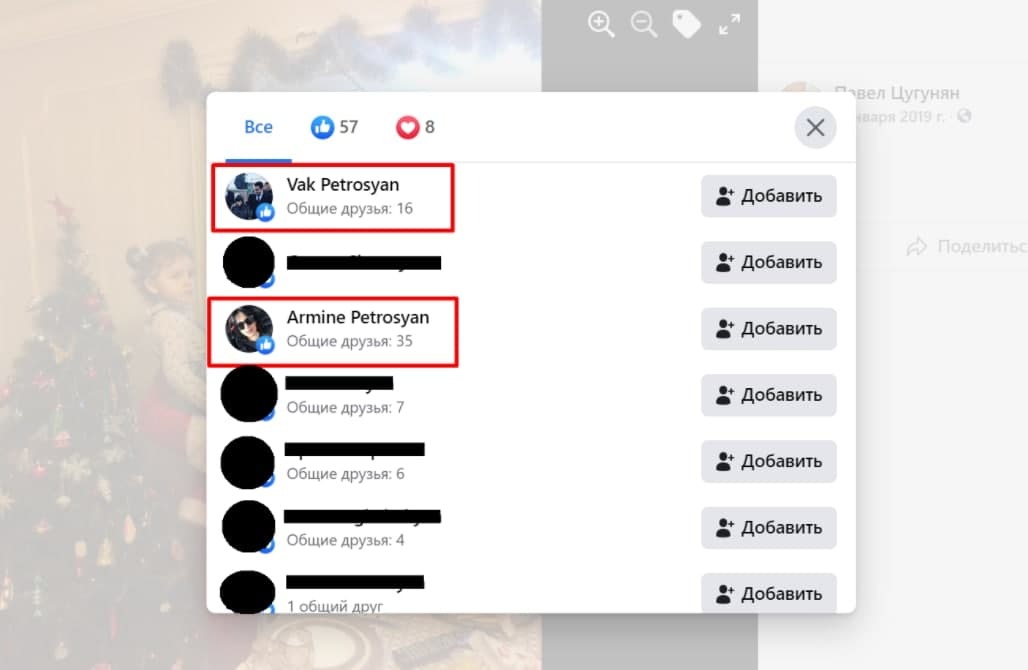 Տիկին Պետրոսյանի եւ նրա որդու ֆեյսբուքյան ընկերների ցանկում կա Հայկ Ռոբերտի Հակոբյան անունով օգտատեր։ Վերջինիս քույրը՝ Անի Հակոբյանը, ֆեյսբուքում դարձյալ ընկեր է Վլադիմիր Ցուգունյանի եւ Ռոմանոս Պետրոսյանի որդու հետ։