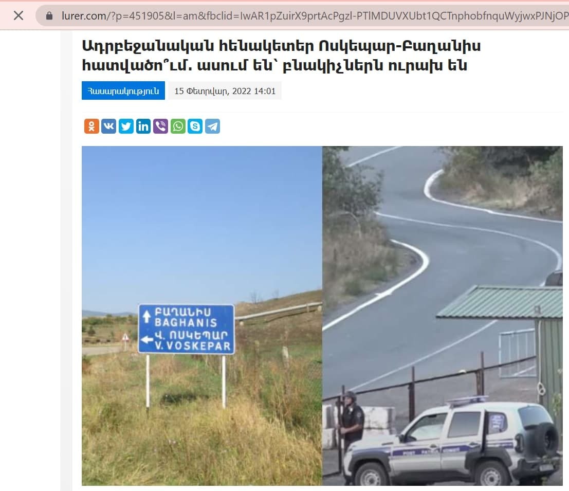 Եւ չնայած Բաղանիսի վարչական ղեկավարը ադրբեջանական անցակետերի հնարավոր տեղակայման մասին հաստատական որեւէ բան չի ասել, իսկ Ոսկեպարի վարչական ղեկավարն ուղղակի հերքել է այդ տեղեկությունները, հենակետեր տեղադրելու վերաբերյալ հարցադրումը հայտնվել է կայքի վերնագրում։